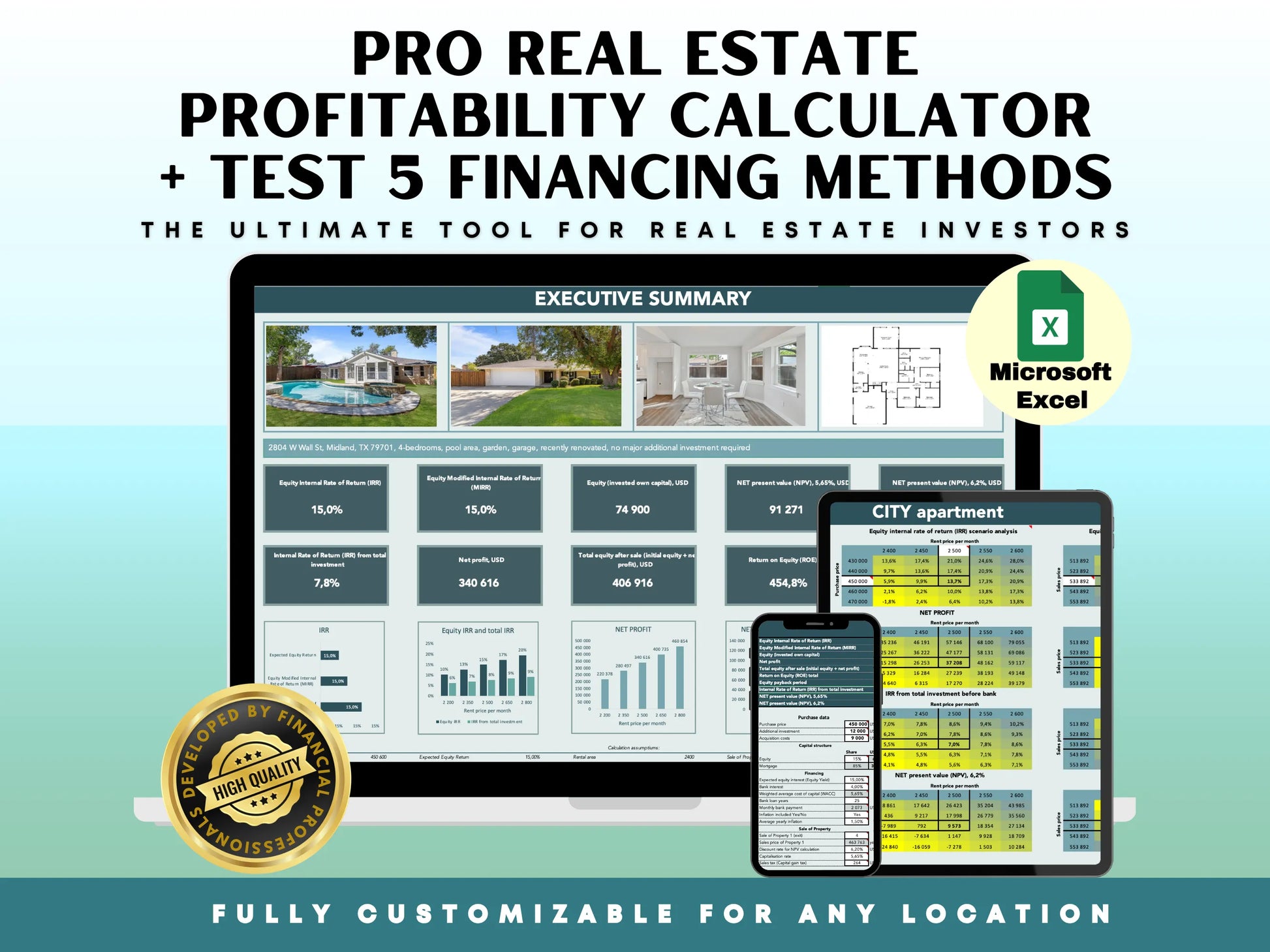 Our Real Estate Investment Analysis Spreadsheet integrates all these metrics automatically. You can: