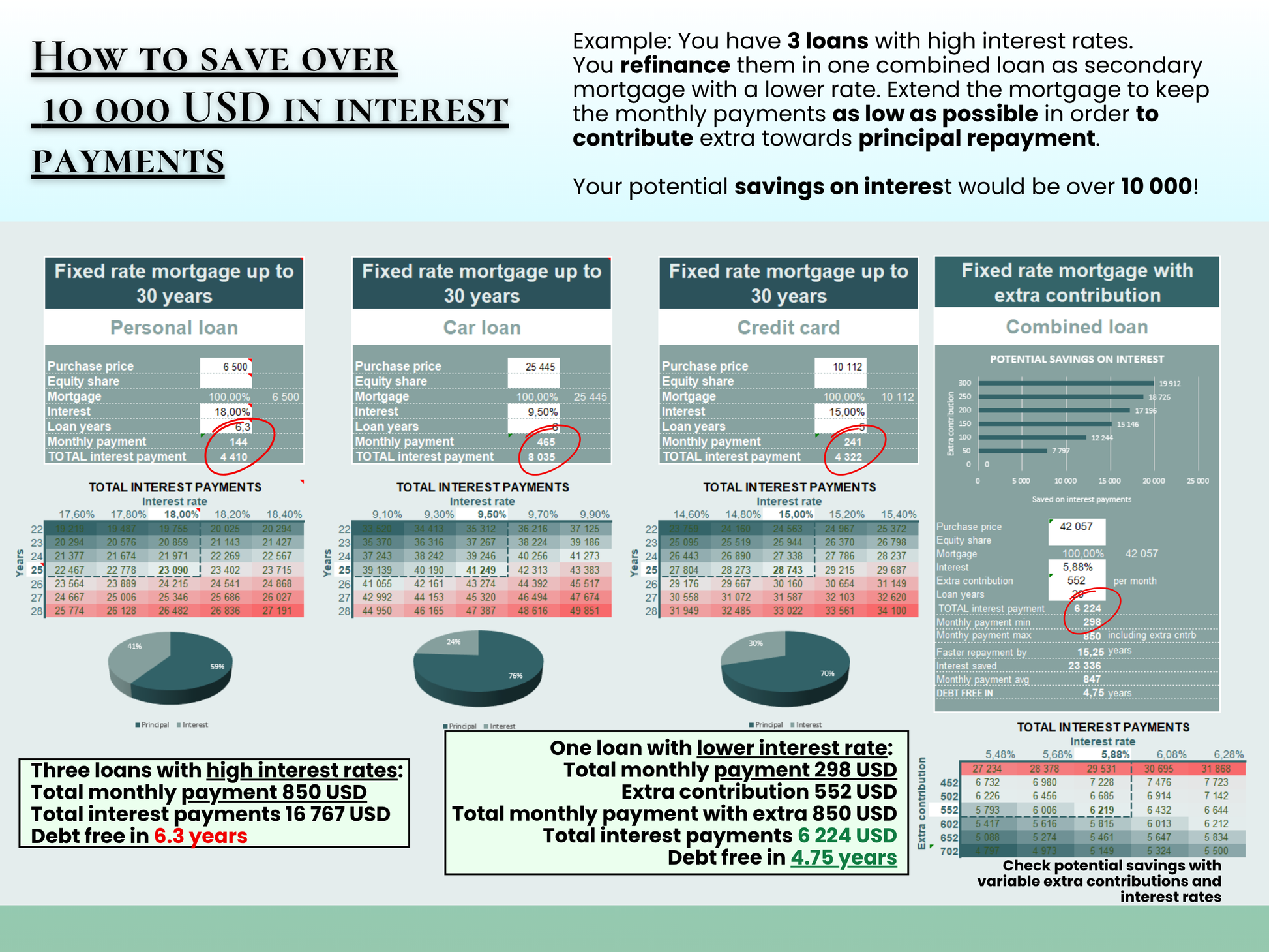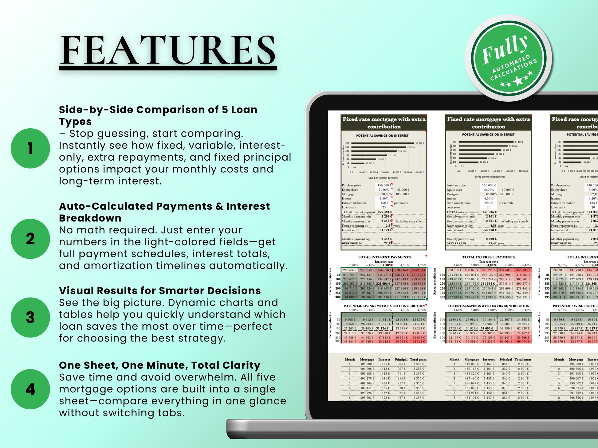 Simply input your loan details, compare repayment options, and discover how much money you can save by selecting the right mortgage. Whether you're a first-time homebuyer or refinancing an existing loan, this intuitive and user-friendly calculator gives you the insights needed to make the best financial choice.
