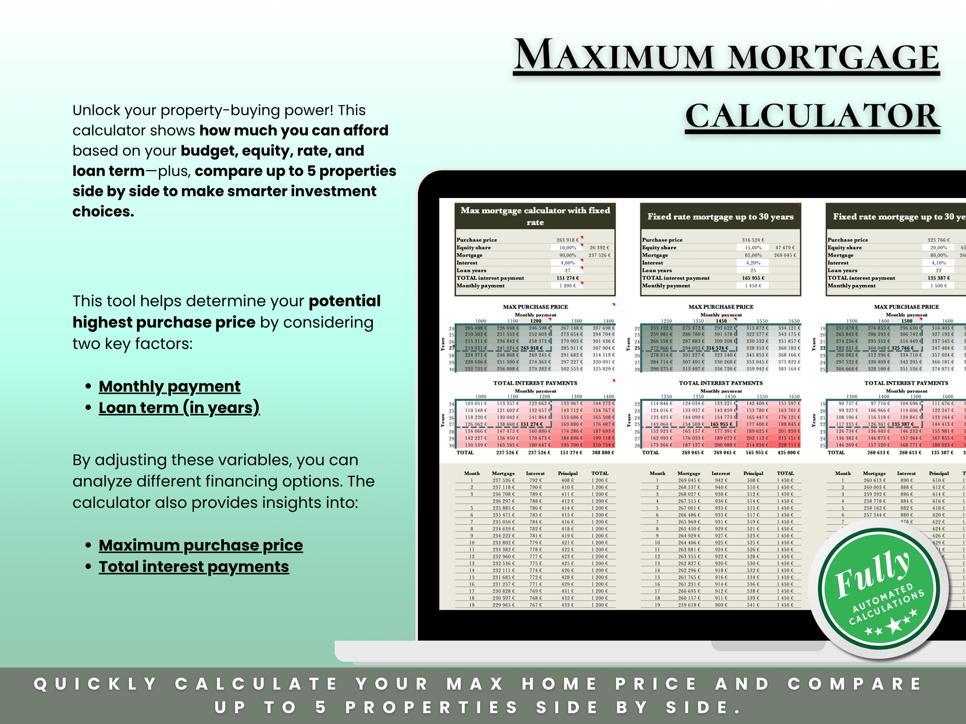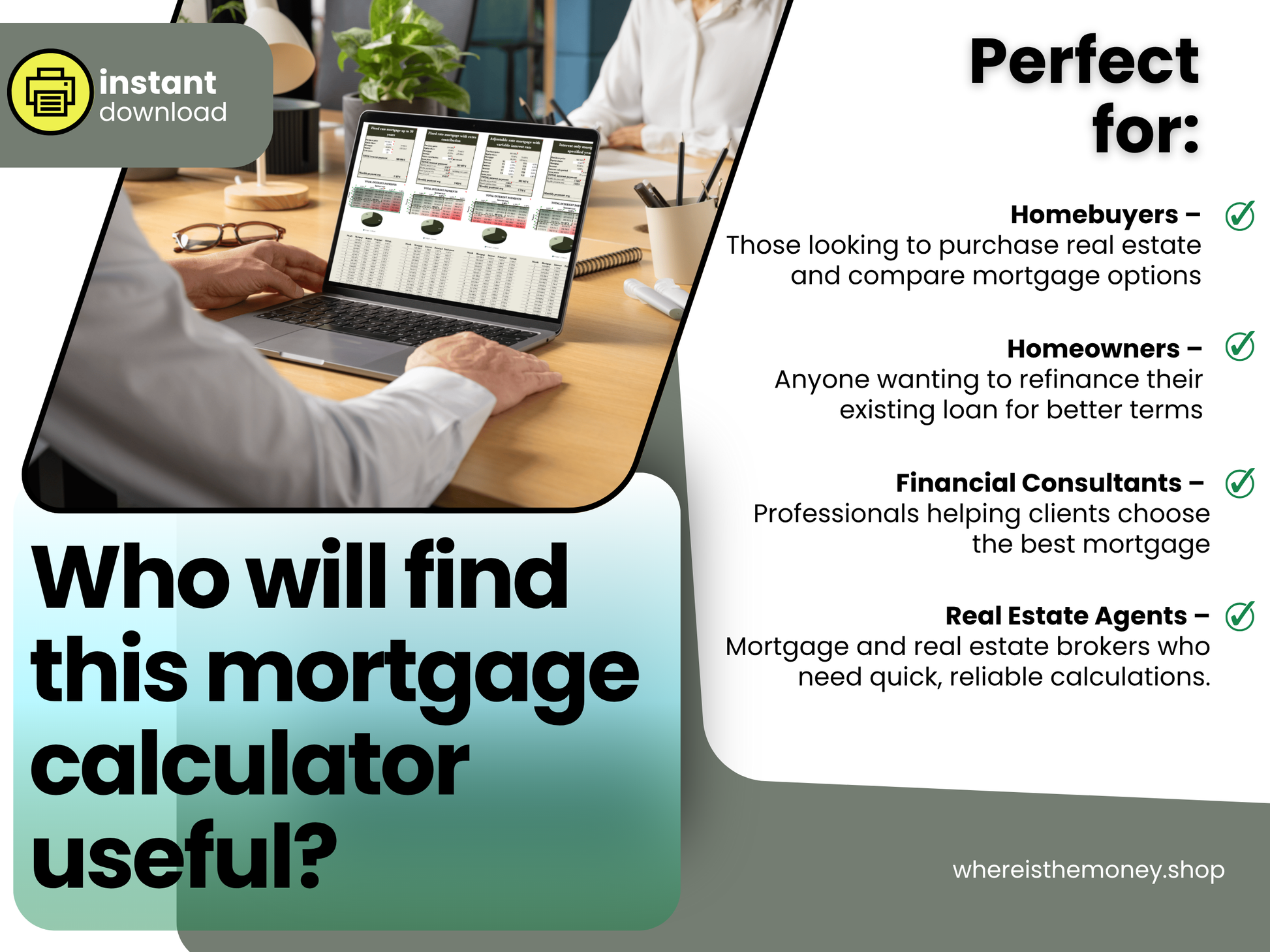 • Ideal for homebuyers, real estate investors, and financial professionals, this tool provides clear insights to support smart mortgage planning.